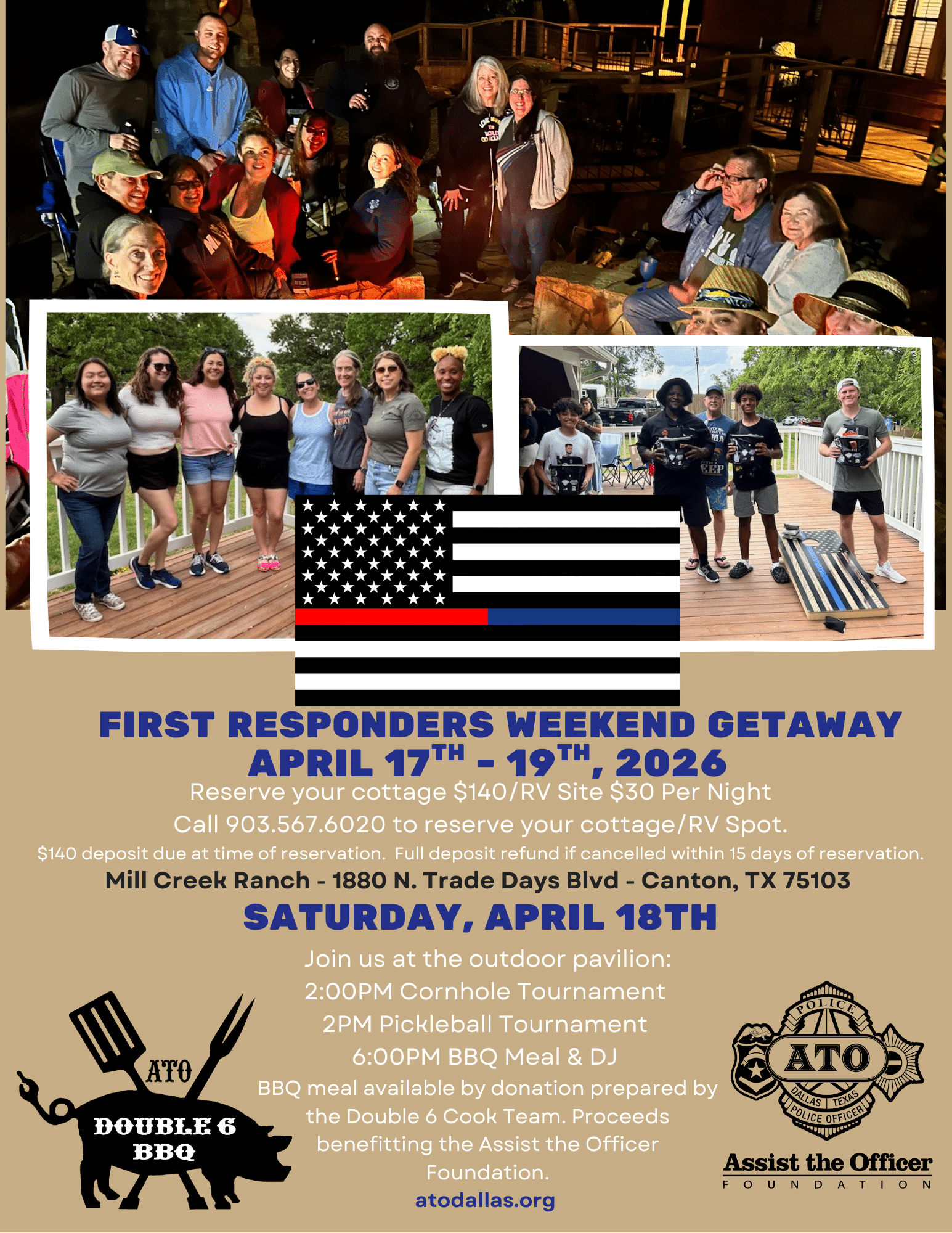 Join us for the Assist the Officer Foundation’s First Responders Weekend Getaway — a relaxing and fun-filled weekend dedicated to our first responders and their families!